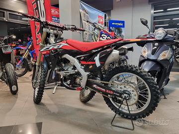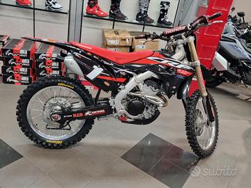 Concessionaria MAX MOTO di monselice specializzata nell offroad vende Honda CRF 250 R anno 2018 competizione ufficiale red moto con manuale e cavalletto originale. Moto con ZERO ore da quando è stata completamente rifatta. Moto portata a telaio e completamente rifatta da capo. Tutti i lavori sono dimostrabili al 100%. Telaio rifatto da zero. Motore nuovo di biella, pistone alta compressione, cuscinetti, distribuzione, pompa olio, valvole e terza marcia del cambio. Testa lavorata con sedi in bronzo berillio e valvole maggiorate, condotti maggiorati e flussati è un missile. Tutta la minuteria, viti, perni motore e scorrimento di tutta la ciclistica nuovi. Pedane in ergal con supporti nuovi, perni, molle. Non ha un grammo di sporco. Tutte le viti delle plastiche, delle piastre e delle ruote nuove. Graficata nuova. Forcelle e mono rifatti di olio e tenute. Cerchi orginali ancora nuovi perchè era usata con altri cerchi. Gomme sono nuove, pastiglie e dischi nuovi. Cuscinetti del leveraggio e del telaio fatti. Tutti i liquidi. Pronta per la pista. Paramotore nuovo della acebis nero. Plastiche e grafiche nuove. Moto ottima per chi vuole una moto prontissima fin da subito.