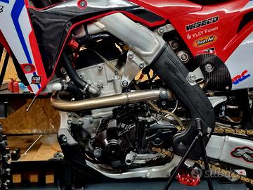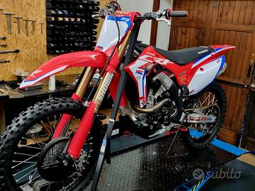 Honda CRF 250 R anno 2020 competizione cross con documento. Moto portata a telaio nella mia officina e completamente rifatta da capo. Tutti i lavori sono dimostrabili al 100%. Motore nuovo di biella, pistone alta compressione, cuscinetti, distribuzione, valvole e terza marcia del cambio. Tutta la minuteria, viti, perni motore e scorrimento di tutta la ciclistica nuovi. Pedane in ergal con supporti nuovi, perni, molle. Non ha un grammo di sporco. Graficata nuova. Forcelle e mono rifatti. Cerchi orginali ancora nuovi perchè era usata con altri cerchi. Piastre in ergal! Gomme sono seminuove, pastiglie e perni delle pinze nuovi. Cuscinetti del leveraggio e del telaio fatti. Tutti i liquidi. Pronta per la pista.