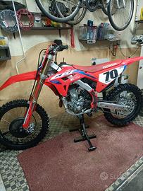 Vendo per raggiunto limite di età (71 Anni ) moto perfetta con solo 30 ore . Monta gomme nuove da sabbia . Regalo abbigliamento vario . Caschi 2 a pagamento . Regalo coppia corone nuove ...catena oro....pignone . Cavalletto .