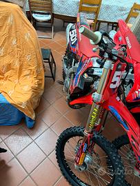 Vendo honda crf 250 2025 con documento di importazione con 77 ore totali a 60 è stato fatto il pistone, gommata pirelli mid soft 80% , corona pignone catena meta vita, va in moto funzionante e tutto ma fa rumore di biella.