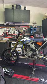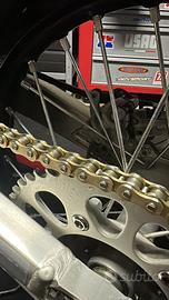 Geco, pedane Mx711, trasmissione con 10h, dischi anteriore flottante, 3 kit plastiche più copertina sella in foto e l'originale, para radiatori, 3 filtri twin air e tappo airbox compresi nel prezzo.
