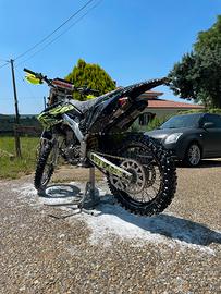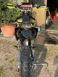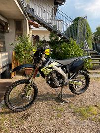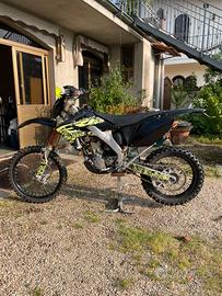la moto è sempre usata nei boschi mai uso pista, moto tenuta da amatore con segni graffi dovuti all'uso nei boschi