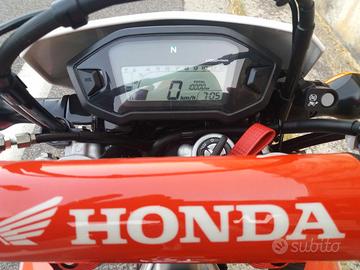 honda crf 250 l, moto custodita sempre in garage e utilizzata sempre su strada, infatti monta pneumatici da turismo e non da cross, mai fatto fuoristrada, usata sempre con cura e sopratutto tagliandata ogni anno con olio bardahl.moto dai bassi consumi " parliamo di 40 km con 1 litro di benzina " economica per la gestione della manutenzione,.la moto verrà venduta al prezzo di 3.300 euro in versione originale... pneumatici METZELER TOURANCE nuovi appena montanti prezzo 200 euro baule GIVI con piastra a sgancio rapido prezzo 60 euro+ portapacchi in ferro 60 euro. batteria appena montata prezzo 50 euro. bollo pagato con scadenza agosto 2026 prezzo 40 euro revisione appena fatta con scadenza aprile 2027 prezzo 80 euro copri raggi colore rosso, paracolpi manubrio con scritta honda,pastiglie freni sostituite, olio freni sostituito, liquido radiatore sostituito. disponibile x qualsiasi prova con vostro meccanico di fiducia !!! perfetta al 100% non necessità di nulla !!! per ulteriori foto, domande ecc sono a vostra disposizione,