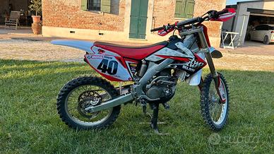 Vendo per passaggio a cilindrata superiore Honda Crf 250r del 2009. Moto usata solo nei campi, mai vista la pista. Tagliandi effettuati ogni 15 ore (cambio olio mot, olio del cambio, filtro olio e aria). Attualmente ha 90 ore ( il motore è già stato rifatto una volta) . Sono appena state regolate le valvole ed è appena stata cambiata la bobina d'accensione. In dotazione anche altri accessori, come plastiche tappo filtro dell'aria, tappi degli scarichi ecc. Per qualsiasi informazione contattare in privato