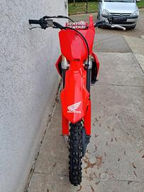 Vendo CRF 250 del 2025. Moto con 50 ore totali unico propietario. Tagliando olio + filtro olio ogni 8 ore. Filtro aria ogni uscita. Vendo completamente originale con plastiche originali nuove mai usate. Forcelle revisionate 10h fa e mono appena revisionato. Catena corona pignone con 5 h.