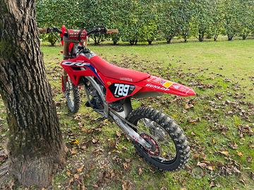 Vendo Honda CRF 250 2022, utilizzata per uso amatoriale, 100h circa Rifatti pistone, valvole e catena di distribuzione rifatti a 50h. La moto viene venduta con altri kit di plastiche e paradisco, oltre a leve in ergal e manopole nuove Trattabile dopo visione