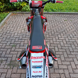 Moto in ottime condizioni, motore appena revisionato. Monta cartucce forcella a molla Andreani, piastre forcella, pedane e carter frizione Logica, scarico completo Spark, tubi radiatore in silicone, vari accessori in ergal e in carbonio (tappi motore, protezione carter accensione, cover serbatoio, pararadiatori ecc.), cerchi DID neri con mozzi verniciati e nipples anodizzati.