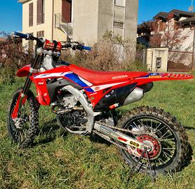Vendo per cambio cilindrata Honda CRF 250R 2020 redmoto ufficiale con 70 ore totali all'attivo, pistone con 10 ore! La moto è in ottime condizioni, sempre effettuato regolare manutenzione (filtro aria pulito ogni uscita e olio/filtro ogni 8 ore). È in perfette condizioni di utilizzo, sempre usata per divertimento e mai per gare. Recentemente sono stati eseguiti i seguenti lavori: -Pistone, candela e catena distribuzione sostituiti a 60 ore -Monoammortizzatore revisionato a 60 ore -Cuscinetti ruote sostituiti a 65 ore -Camera aria anteriore nuova -Pulizia e ingrassaggio cuscinetti sterzo Insieme alla moto cedo coppia di convogliatori originali e 4 filtri aria in ottime condizioni. Per qualsiasi informazione o foto aggiuntive non esitate a contattarmi. Prezzo non trattabile