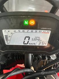 Honda crf250 rally del 2018 Circa 53900km Euro 4 Guidabile con A2 Abs posteriore disinseribile Bollo pagato Moto comoda, divertente e molto affidabile con lunghi intervalli di manutenzione (12000km per l’olio, 24000 per il filtro e 48000 per la candela) Utilizzata principalmente in città, con eccezione di qualche uscita nel fine settimana. Tutto su asfalto ad eccezione di qualche strada bianca. Lavori fatti visibili in foto 5 (ho gli scontrini di quasi tutto): -tagliando completo (olio motul 7100, filtro olio e guarnizione originale Honda, filtro aria, candela) -gomme metzeler tourance (cambiate anche le camere d’aria) -pasticche anteriori brembo (le posteriori possono ancora andare ma ne fornisco un paio nuove brembo) -ingrassaggio e tensionamento catena da concessionaria Honda - cambio cuscinetti di sterzo La moto viene data con: -due chiavi (una originale e una copia) -porta pacchi e bauletto -due uscite usb per caricare telefono ecc. (montato a connettore apposito quindi nessun problema all’elettronica) -leve pieghevoli (fornisco anche una standard per il freno) -parabrezza oscurato Sono disponibile per eventuali chiarimenti