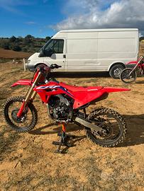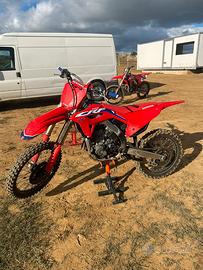 Vendo come da titolo Honda Crf 250 2022 moto con 105 ore dall'attivo e 55 dal rifacimento del pistone. Distribuzione con catena corona e pignone cambiata da 10 ore, gomme Pirelli cambiate e usate solo 1 uscita. Vendo per inutilizzo no affaristi, no sognatori , non scambio, no perditempo