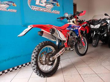 Accessori/note: BELLISSIMA HONDA CRF250RX. IMMATRICOLAZIONE 2018 MA GIA' MODELLO 2019. IDONEO ANCHE PER PATENTE A2. VERSIONE A TRIPLA OMOLOGAZIONE SUL LIBRETTO. POSSIBILITA' DI INSTALLARE ANCHE L'ALLESTIMENTO MOTARD. PERFETTA E SFRUTTATA POCHISSIMO. SOLO 47 ORE ALL'ATTIVO PER UN TOTALE DI POCO PIU' DI 1500KM. UTILIZZO AMATORIALE. MAI GARE. FORCELLONE, PIEDINI, TELAIO TUTTO IN CONDIZIONI CHE RISPECCHIANO IL NUOVO. COMPLETAMENTE ORIGINALE CORREDATA DI DISCO PIENO POSTERIORE, MOUSSE, PARAMANI, SISTEMA ILLUMINAZIONE SEMPLIFICATO, BATTERIA NUOVA, ILLUMINAZIONE FULL LED. DA POCO ESEGUITO KIT TRASMISSIONE. SOSTITUZIONE FATTA SOLO A SCOPO CAUTELATIVO VISTO IL NON UTILIZZO DEL MEZZO.