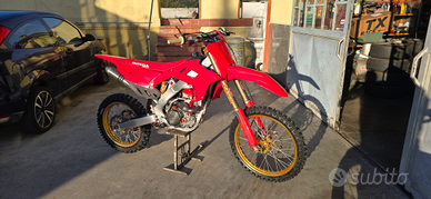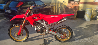 Honda crf 250 ..... 2 telai uno cross del 2008 e laltro enduro targato del 2005.... attualmente montata su telaio targato e revisionato.......moto perfetta kit restyling 2023 , forcelle e piastre SOLVA , mono Ohlins , kit motore 300cc. Albero motore HRC, frizione antisaltellamento APTC adige, Scarico titanio arrow, dischi freno maggiorati, leve antirottura..........pronta all'uso moto appena assemblata tutto appena revisionato....forcelle,mono, motore, ecc ecc....visionabile senza impegno nella mia officina, posso valutare permute e scambi