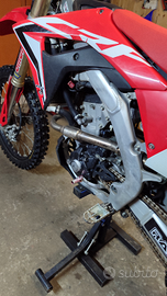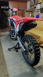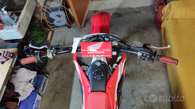 Vendo Honda CRF 250 4 tempi del 2019, dispongo del documento originale, moto con 45 ore di pistone, montati da poco gli scarichi LM completi (ho anche quelli originali) plastiche sostituite con grafiche originali, gomme con poco meno di 8 ore da quando sono state montate con camere d'aria nuove, tagliando con 2 ore all'attivo.