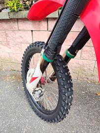 Honda CRF 250X acquistata nuova con 0 km nel 2018 da RedMoto, usata molto poco (circa 10 uscite/anno) e solo amatorialmente (uscite molto facili). La moto ha 90 ore (circa 3000 km) e ha sempre avuto manutenzione regolare (olio motore e olio cambio ogni 15 ore, filtro aria sempre pulito, catena pulita e lubrificata dopo ogni uscita, candela nuova ogni 30 ore ecc). Le sospensioni sono state preparate da nuove da Andreani con cambio olio, tenute SKF ad alta scorrevolezza e steli trattati al TiN, il mono con molla per pilota da 85 kg. Inoltre sono presenti numerosi accessori quali paracoppa in alluminio Works Connection, cerchi Marchesini Rock con mozzi in ergal, leve snodate antirottura (quella freno Renthal Intellilever, quella frizione ASV), pedali freno e cambio in alluminio della Hammerhead, manopole in kevlar della Renthal, protezioni forcellone Acerbis, protezione carter frizione in alluminio, cinghie anteriori e posteriori della Kriega, borsetta da parafango Kriega, batteria al litio, raschiafango SKF, protezione foderi forcella Acerbis, contaore ecc. gommata Metzeler 6 days soft. Inlcusi nella vendita, pistone con fasce e spinotto, valvole di aspirazione ed albero motore tutto materiale nuovo ed originale che avevo preso all'epoca dell'acquisto da RedMoto in funzione di eventuale revisione motore. Vendo a malincuore causa ernia discale che non mi permette più di andare in moto. Per altre info, chiedete