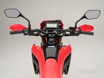 Per il 2025 l'inarrestabile 'dual-purpose' CRF300L riceve numerosi aggiornamenti, che includono dettagli estetici e tecnici. Adesso il faro e gli indicatori di direzione sono a LED e il frizzante monocilindrico raggiunge l'omologazione Euro5+ subendo, inoltre, modifiche che ne migliorano la gestione e la dispersione del calore. Il reparto sospensioni è stato ulteriormente messo a punto nello smorzamento idraulico. Il chiaro ed intuivo schermo LCD è ora predisposto con presa USB-C al lato. L'apprezzatissimo impatto visivo e le accattivanti plastiche della CRF300L sono valorizzate dall'aggiornata colorazione 'Extreme Red' che vanta lo stesso schema cromatico delle sorelle specialistiche 250 e 450 per il motocross.