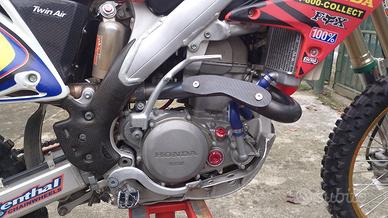 onda CRF 450 anno 2006 motore rifatto pistone Biella valvole catena distribuzione Ruote anodizzate raggi rinforzati ripari in carbonio paramotore alluminio campana frizione hinson sospensioni fatte da solva doppia marmitta una completa acrapovik ore motore quattro ore vendo 2.500 Euro catena corona pignone Ok gomme al 50 per Cento plastiche è grafiche nuove carburatore completamente rivisitato