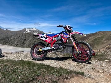 vendo HONDA CRF 450 2011, 90 ore da rifacimento motore, forcelle appena revisionate, tagliandata e revisione fatta. -gomma posteriore 90% ,anteriore 50% -cambiati recentemente bobina, statore , rotore e camblaggio impianto elettrico. -dotata di tripla omologazione e omologato per 2 persone. - monta piastre geco anodizzate e in ergal, leve in ergal e cerchi anodizzati rossi - radiatori maggiorati -scarico completo LEO VINCE X3 - monta frizione REKLUSE (non serve usare la frizione per partire e ad alzare le marce) ha accensione a pedalina, ventola di raffreddamento, faro anteriore e posteriore, cedo anche plastiche nere.
