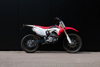 Vendo a malincuore Honda CRF 450 allestimento ufficiale RedMoto dell'anno 2015 per passaggio a diversa categoria. La moto è stata immatricolata nell'anno 2017, in ottime condizioni e pronta all'uso. Caratteristiche principali: Omologazione: Tripla omologazione a libretto (Cross / Enduro / Motard), anche passeggero. Motore: Pistone e blocco motore rifatti completamente, attualmente con sole 15 ore di attivo. Ciclistica: Doppio kit di ruote incluso nel prezzo: Kit Motard (cerchi da 17", impianto frenante dedicato). Kit Cross (21"/19"), cerchi Excell e gomme semi-tassellate. Manutenzione: Moto sempre seguita con cura maniacale, cambi olio e filtri effettuati regolarmente ogni 10 ore. Non necessita di alcun lavoro, è pronta per scendere in pista o su strada. Insieme alla moto fornisco anche tutti i kit plastiche presenti in foto con altri ricambi vari per fare manutenzione alla moto. Per ulteriori informazioni contattatemi.
