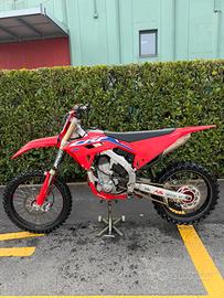 Vendesi Honda crf 450 2021, red moto con targhetta su telaio e documento cartaceo, immatricolabile, unico proprietario. Ha 128 ore, con regolare e scrupolosa manutenzione. A 95 ore è stato regolato il gioco valvole, biella e pistone in perfette condizioni senza alcun gioco. Frizione con 10 ore all’attivo, montata nuova e originale Honda. Documentabile. Batteria nuova. Sospensioni e mono revisionati a 112 ore, monta sella più alta con copertina Dalla Valle nuova, para motore acerbis, cerchi Excel taghasago neri con mozzi anodizzati rossi kite, sia anteriore che posteriore. Attacchi manubrio più spessi neri anodizzati e manubrio renthal, più grosso dell’originale. Monta pedane maggiorate motocross marketing. Lo scarico completo hgs non è incluso nel prezzo, verrà consegnata con scarico originale nuovo mai usato e senza botte con coperchio in carbonio CRM. Assieme do kit di plastiche, filtri, e due coprifiltri. Moto pronta all’uso. Gomme al 40%. Vendesi per problemi di salute, non valuto alcuno scambio. Non voglio far perdere tempo a voi e non voglio perdere tempo io. Sono una persona seria e vendo un oggetto in ottime condizioni. Non fate offerte non loghiche , se non avete il denaro passate oltre. Posso trasportarla previo accordo. Gabriele Non scambio con kawasaki yamaha ktm tm suzuki e honda cr