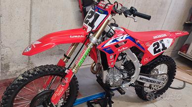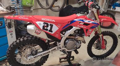 Honda CRF 450R ottobre 2024 con all'attivo 4 ore da prima accensione, l'ho usata 4 uscite e poi mi sono fratturato con la minigp e ho avuto vari interventi. ufficiale remoto -sospensione Poletti -pararadiatori -vari accessori in carbonio -doppie plastiche -blocca partenza e ferma da dicembre 24, accesa regolarmente ogni tanto ma non più utilizzata, speravo di riprendere ma non potrò. solo pagamento tramite bonifico bancario istantaneo