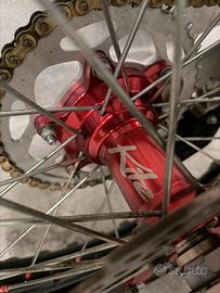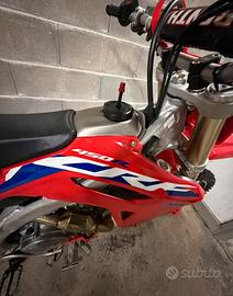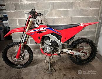 Vendesi Honda crf 450 2021, red moto con targhetta su telaio e documento cartaceo, immatricolabile, unico proprietario, amatore. Ha 128 ore, con regolare e scrupolosa manutenzione. A 95 ore è stato regolato il gioco valvole, biella e pistone ancora in perfette condizioni senza alcun gioco. Frizione con 10 ore all'attivo, montata nuova e originale Honda. Batteria nuova. Sospensioni e mono revisionati a 112 ore, monta sella più alta con copertina Dalla Valle nuova, para motore acerbis, cerchi Excel taghasago neri con mozzi anodizzati rossi kite, sia anteriore che posteriore. Attacchi manubrio più spessi neri anodizzati e manubrio renthal, più grosso dell'originale. Monta pedane maggiorate motocross marketing. Lo scarico completo hgs non è incluso nel prezzo, verrà consegnata con scarico originale nuovo mai usato e senza botte con coperchio in carbonio CRM. Assieme do kit di plastiche, filtri, e due coprifiltri. Moto pronta all'uso. Vendesi per problemi di salute, non valuto alcuno scambio. Non voglio far perdere tempo a voi e non voglio perdere tempo io. Non fate offerte non loghiche , se non avete il denaro passate oltre. Il prezzo non e trattabile. Posso trasportarla. Non scambio con tm ktm Yamaha Suzuki e Kawasaki. Info via messaggio qui o su whatsapp al 3407156006, no chiamate, per problemi lavorativi. Gabriele
