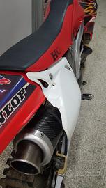 vendo honda crf 450 r 2005 con scarico mivv in fibra di carbonio e collettore dep pipes, insieme alla moto è compresa nel prezzo una centralina originale honda, plastiche con grafiche originali honda e una copertina sella. -ultimi lavori eseguiti: -sostituzione filtro olio motore e cambio statore centralina e bobina revisione kit pompa dell acqua gomme nuove -possibilità anche di abbigliamento