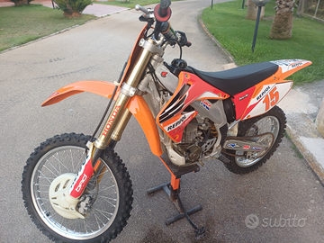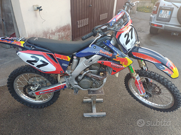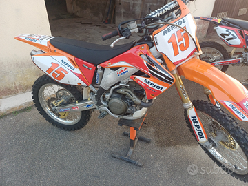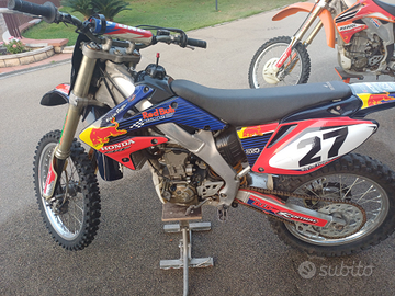 Vendo 2 bellissime moto cross Honda perfette, usate pochissimo in campagna solo per divertimento. CRF 450 del 2005 grafica Repsol, CRF 250 del 2007 con grafica Red Bull. Prezzo per entrambe le moto. Cedo anche abbigliamento Cross nuovo e seminuovo. Nunzio 3346316402