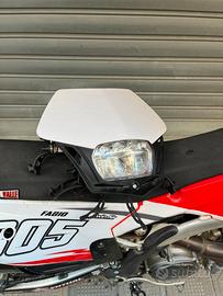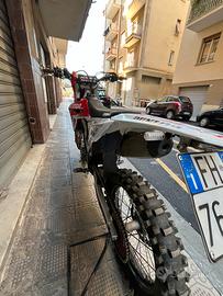 la moto ha all' attivo 89 ore ed è stata tagliandata regolarmente. Forcelle e mono sono stati tarati e preparati per utilizzo cross. La moto è dotata di diversi pezzi in carbonio, tra cui: