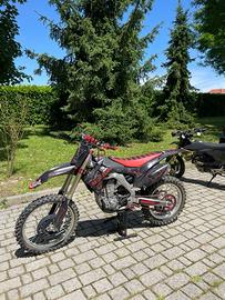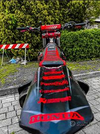 Honda CRF 450 2015 Accenderla non significa solo mettere in moto una moto, ma liberare una scarica pura di adrenalina. Una moto che in pista sa essere brutale e precisa allo stesso tempo con le sue 3 mappature : pronta, reattiva, cattiva nell’erogazione, con quel carattere deciso che ti spinge curva dopo curva a cercare sempre qualcosa in più. Ogni apertura di gas restituisce una sensazione diretta, fisica, intensa. Il motore ha una risposta aggressiva, piena, coinvolgente. All’ attivo la moto ha 80 ore con tagliandi e manutenzione effettuata ogni 10 ore (3 uscite in pista) e filtro aria ogni uscita! Ogni lavoro è sempre stato fatto da meccanici professionisti e certificato. A livello estetico e tecnico la moto si presenta con una configurazione ricca e curata, pensata per valorizzarne sia la resa sia la presenza. Accessori e dotazioni: •Scarico doppio Yoshimura con fondello in carbonio e anche originale (1800€) •Doppio kit di plastiche: originali + modificate nere (400€) •Serbatoio CMT full carbon maggiorato (800€) •Radiatori maggiorati con tubi rossi (300€) •Kit ergal su pedane e leve antirottura (200€) •Piastre in ergal (600€) •Forcelle ad aria-olio ricaricabili •Trasmissione completa nuovissima La moto ha tanta compressione nel motore e gomme tassellate in buone condizioni, non necessita lavori per l’utilizzo, vendo perchè sto pianificando di andare a vivere in un’altro paese dopo la laurea. Non vendo a pezzi ma il prezzo comprende tutto! Per ulteriori foto/informazioni 389 899 7860 Alessandro.