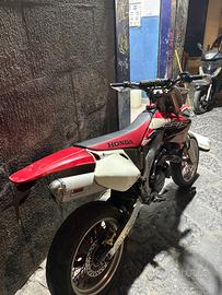 Vendo Honda CRF 450 anno 2011, allestita motard, moto molto divertente e performante. La moto è stata convertita per uso stradale/motard con ruote da asfalto (17”), che garantiscono maggiore stabilità e grip su strada. 🔧 Caratteristiche principali: Anno 2011 Allestimento supermotard Ruote da asfalto (17”) Scarico aftermarket racing Forcelle Showa Manubrio Renthal Impianto frenante performante Grafica CRF racing 💥 Moto leggera, potente e reattiva, perfetta sia per strada che per divertirsi in pista. 📌 Condizioni: Motore in ordine Normali segni estetici da utilizzo Gomme in buono stato Accetto scambio con moto 250