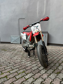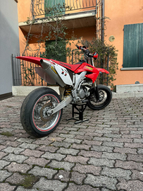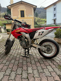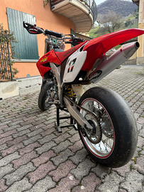 Vendo honda crf 450 motard motore con 37 ore dal rifacimento monta scarico arrow forcelle e mono tarate motard disco 320 con sposta pinza e pompa anteriore revisionata non presente in foto ma e una brembo 16*18 solo da montare alla moto andrebbe fatto un tagliando e un controllo generale in quanto non è più stata usata regolarmente da quasi 2 anni in più fornisco dei ricambi