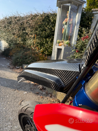Al momento la moto ha all'attivo 90 ore, sempre tenuta maniacalmente, usata solo per qualche uscita il weekend. Come da foto, attualmente la moto monta il parafango anteriore, la mascherina anteriore, i para telai laterali, cover batteria e cover scarico in carbonio marchiati CMT. Montato anche il carter frizione trasparente di vm racing ricavato dal pieno. Dispongo anche di tutti i pezzi originali e di un altro set di plastiche mai utilizzate. Il prezzo comprende sia i pezzi in carbonio che i pezzi originali. Anche le gomme sono buone, 80% circa. La moto inoltre è doppia omologazione enduro/motard. Moto unico proprietario. Guidabile con patente a2. Prezzo trattabile