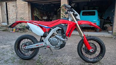 vendo honda CRF 450 2018, moto ancora in rodaggio. lascio assieme anche tutto il kit enduro compreso di cerchi, gomme, trasmissione completa e carene. in più anche un filtro aria, collettore di scarico originale e altri accessori. unico difetto gomma posteriore leggermente segnata sulla parte sinistra prima di mettere lo spostacatena, vendo per passaggio a stradale. per altre info Lorenzo 3703172736