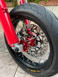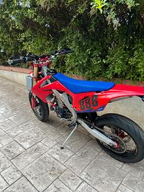 HONDA CRF 450 R allestimento motard TARGATO Depotenziata solo a libretto GUIDABILE con A2 a 18 anni Modello 2009 ritargata da me nel 2022 dopo che ho perso la targa 3 omologazioni motard enduro cross; trattata maniacalmente, tagliando ogni fatto ogni 10 ore, sempre tenuta al chiuso motore 60h con biella nuova; pistone nuovo gioco valvole controllato revisione forcelle completa monta: pompa anteriore beringer pinza discacciati pasticche anteriori e posteriori nuove catena nuova scarico leo vince gomme nuove messe poco tempo fa carter #201 sposta catena di manifattura umbra additiva per montare la gomma 160 serie di dettagli in ergal piastre forcelle ergal frizione sintetica e molle frizione rinforzate candela titanio; mozzi faba e cerchi exel, frecce anteriori e posteriori a striscia led fornisco anche impianto elettrico originale vendo per passaggio a cilindrata superiore bollo pagato fino a 2027 revisione pagata Ha 19 kw a libretto paga solo 40 eurdi bollo e circa 200 eur di assicurazione si parla del prezzo dopo visione dal vivo non ho fretta di vendere no perditempo grazie info whatsapp se realmente interessati