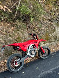 vendo honda crf 450r 2018 targato a giugno 2025 da redmoto, tripla omologazione un posto a sedere, con svariate modifiche, la moto è bancata 65cv con preparazione motore e mappa dedicata con centralina wossner in più monta:
