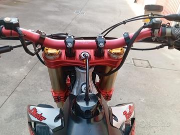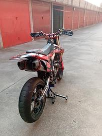 vendo per inutilizzo Honda CRF 450 pronto pista con pistone nuovo e motore con 45ore. la moto monta: -forcelle anteriori ohlins appena revisionate -mono preparato Motard da Tiziano Monti -leveraggio Extreme riders Motard -canotto sterzo inclinato per riduzione interasse -forcellone modificato per uso Motard -radiatori maggiorati -piedini cobra -piastre sterzo frt racing spider -cerchio anteriore 16.5 alpine by kite -centralina con 3 mappe dedicate -pistone vertex alta compressione nuovo -frizione anti saltellamento -cuscinetti perno ruota posteriore nuovi -disco ant breaking 320mm -freno posteriore al manubrio -pinza ant accossato radiale con pastiglie nuove -doppio scarico zard -manubrio nuovo -cambio elettronico sp da rimontare moto da effettuare cambio gomme e andare in pista.