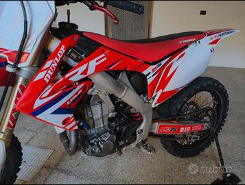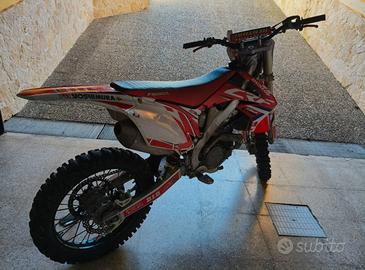 HONDA CRF 450 R Motore e carrozzeria perfetti. Tagliando completo fatto con zero ore. Pistone e biella cambiati e con 35 ore ore all'attivo. Frizione modificata Sospensioni anteriori e posteriori nuove. Tubi in silicone Cerchi neri excel Cover serbatoio in carbonio Pedane in ergal Motore e carrozzeria perfetti possibilità di qualsiasi prova anche con meccanico di fiducia. Occasione, vendo per immediato realizzo. Info: 3382505174 Prezzo € 3.000