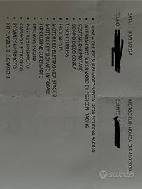 Vendo Honda Crf 450 r 2020 RED MOTO, con all'attivo 2 ore di funzionamento di cui 1.5 di solo rodaggio. La moto è stata acquistata di recente da noto team romano , pizziconi racing.