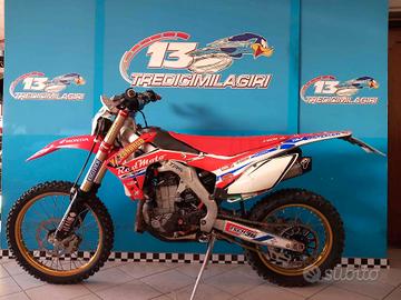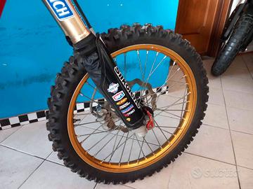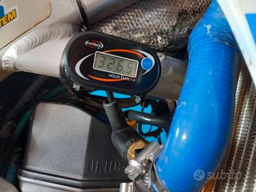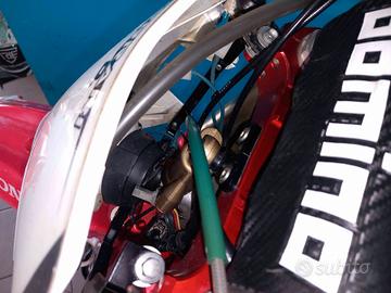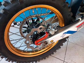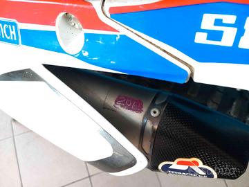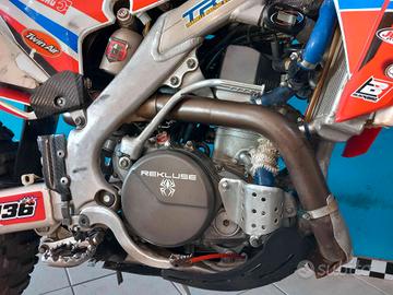 VEICOLO VINCENTE CON SALVINI TEAM REDMOTO ZANARDO NEL CAMPINATO ENDURO ANNO 2014/2015, DI CUI ALLESTIMENTO COMPLETO ANCORA PRESENTE E MONTATO SUL VEICOLO. PRESENTI ANCHE LE PUNZONATURE ORIGINALI. MONTA SCARICO COMPLETO TERMIGNONI DEDICATO TITANIO E CARBONIO, FRIZIONE REKLUSE APPENA INSTALLATA NUOVA, FORCELLE E MONO APPENA REVISIONATE COMPLETE DI SOFFIETTI PARAPOLVERE, PISTRE REGOLABILI E SGANCI RAPIDI PER I CERCHIONI XTRIG, SERBATOIO, PROTEZIONI FRENI E FINITURE IN CARBONIO, KIT PROTEZIONE SCARICHI, SOTTOCODONE IN CARBONIO. LEVE E POMPA FRIZIONE MAGURA, IMPIANTO ELETTRICO SEMPLIFICATO, TUBI SILICONICI, ELETTROVENTOLA E RADIATORI MAGGIORATI G MAX,DISCHI FRENO,PASTIGLIE E KIT TRASMISSIONE NUOVI.