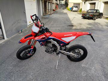 Vendo Honda CRF 450 Supermotard in condizioni impeccabili, praticamente pari al nuovo. La moto ha solamente 3.500 km reali ed è stata sempre mantenuta con la massima cura, con tagliandi effettuati regolarmente ogni 10 ore. È stata utilizzata esclusivamente durante il periodo estivo per brevi tragitti, motivo per cui si presenta senza alcun segno di usura, davvero immacolata. L’allestimento è completo in versione motard ed è dotata di accensione elettrica, impianto frenante Brembo, 3 mappe motore selezionabili, 3 livelli di controllo di trazione e launch control, offrendo prestazioni elevate e grande divertimento alla guida. La moto è inoltre guidabile con patente A2. Si tratta di un mezzo pronto all’uso, senza bisogno di alcun intervento, ideale per chi cerca qualità, affidabilità e performance in un’unica soluzione. PREZZO TRATTABILE. Per qualsiasi informazione o per visionarla contattatemi al numero 3311564831.