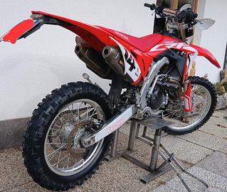 Vendo Honda CRF 450 RX, anno 2017 con avviamento elettrico e a pedale. Moto con poche ore, sempre tagliandata e in buonissime condizioni generali. Forcella e ammortizzatore preparato da Solva per enduro. Impianto di scarico Akrapovic e originale, portatarga rapido. Immatricolazione anche motard!