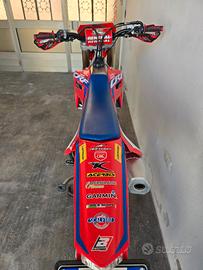 Vendo Honda CRF450RX tenuta maniacalmente, usata pochissimo 3/4 volte all'anno, all'attivo 83 ripulita a mestiere ogni volta che e stata usata catena e leveraggi ingrassata ogni volta. le foto parlano da sole. c'è qualche piccolo cibollo sull terminale. in res moto normale usata del tempo, chi conosce questo tipo di moto sa bene cosa aspettarsi da questo tipo di moto.