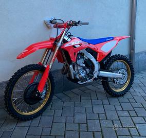 Vendo Honda 450-R del 2024 targata e omologata, acquistata nuova da me, graficata 50esimo anniversary All'attivo motore con 28 ore da nuova. Ho tutto l'impianto elettrico nuovo, faro e codino con luce, manuali e libretti originali honda, copertina sella rossa nuova. Configurazione STAGE 2 Motard Vm Racing (ho la fattura dei lavori eseguiti): Cerchi faba edizione oro impianto completo Brembo cambio elettronico SP piastre raiser supermotard regolabili catena rossa Rapporti motard scarico akrapovic completo gomme seminuove Spostacatena supermoto tamponi Neri Paramani parafango supermotard artigianale. Dispongo anche del kit Cross originale, con tutte le altre parti originali (piastre, raiser, pompa, freno completa, scarico, parafango,cerchi gommati nuovi, rapporti cross,) TUTTI i pezzi acquistati nuovi e anno 28 ore di vita. possibilità di trasporto nord Italia scambio/permuto con auto di mio gradimento trattabile dopo visione
