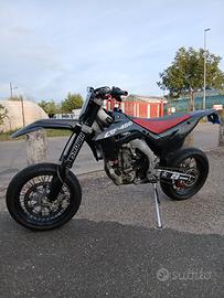 Vendo honda crf 450 del 2005, immatricolata a novembre 2025. Revisione valida fino al 2026. Omologata motard a libretto, guidabile con patente a2 e 2 posti a sedere. Plastiche aggiornate, circa 70 ore utilizzo strada e tagliandi regolari mai uso pista. Rapporti 14-43. Freni in ottimo stato e disco anteriore maggiorato. Sono stati eseguiti vari lavori tra cui statore e volano che sono stati sostituiti. Anche la candela e la bobina sono nuove, il carburatore è stato revisionato. L'impianto elettrico funziona e dispone sia di frecce che stop, doppia chiave. In più cedo tanti accessori come paramani, uno specchietto e conta km che attualmente sono da montare. La moto è pronta all'uso e la vendo per inutilizzo. Collettore dep e silenziatore originale. Ho anche il silenziatore dep ma è da sistemare. Prezzo trattabile.