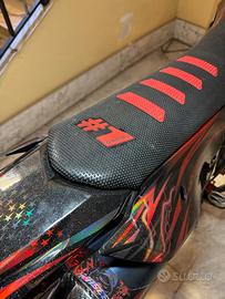 Metto in vendita questa fantastica CRF 450R per passaggio a nuovo progetto supermoto Ecco i dettagli di cosa monta: -Motore completamente revisionato dall’inizio alla fine, rodato regolarmente e con 6,9 ore all’attivo, olio e filtro dell’olio appena sostituiti -Cerchi Motard -Gomme Michelin al 70% -Quasi tutto il catalogo di carbonio per questa moto unicamente da cmt compositi (paraspruzzi, copri serbatoio, flap convogliatori, copri pompa frizione, copri batteria, copri forcellone, parapignone, copri carter etc…) -FMF 4.1 FULL TITANIO in perfette condizioni -Due ventole aftermarket veramente eccezionali per tenerla sempre a temperatura ottimale -Forcellone, piedini forcella, piastre, telaio, radiatori e telaietto sono stati verniciati a polvere di nero, sposta pinza invece in rosso -Impianto frenante completo 16x16 pista Accossato da Vm racing -Un bel po’ di Ergal per tutta la moto (pedane, pedale cambio, pedale freno, dadi ruota etc…) compresa bulloneria rossa di Geco -Spostacatena -Impianto elettrico full semplificato Insieme alla moto cedo tutti i ricambi originali (scarico, pinza davanti e pompa, 3 kit di plastiche bianche, rosse e nere e altro) IMMATRICOLATA NON È OMOLOGATA MOTARD PREZZO LEGGERMENTE TRATTABILE Per favore solo gente seria Grazie