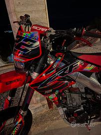 La moto ha 130 ore,a 119.3 ore è stata portata a telaio e curata nei minimi dettagli,dal motore alla ciclistica,è stato revisionato completamente il carburatore e tutto l'impianto elettrico compreso lo statore nuovo.Tagliando eseguito ogni 9/10h con olio motul 7100 dimostrabile,bobina nuova,candela nuova NGK IF8H11,filtro aria nuovo,gioco valvole appena effettuato,collettore e terminale puliti internamente e terminale riverniciato ed è stata cambiata la lana di vetro,come nuovo.Esteticamente è perfetta,grafiche personalizzate olografiche dal valore di 350€,telaio lucidato a specchio e protezione in pellicola carbonio,tubi sfiato carburatore e tubi radiatori nuovi,pedane e leve freno/frizione anti rottura rosse,tappi olio ergal rossi,distanziali ruote in ergal rossi,coperchi liquido freni in ergal rossi,paraspruzzi nuovo,luce posteriore led,portatarga pieghevole gtlab,frecce nanoled,faro posteriore led,mascherina v-face con faro led angel eye RED,paracolpi scar,manopole protaper,cerchio anteriore FABA. Insieme alla moto cedo due kit di cerchi,uno con semitassellate mitas,l'altro con tassellate metzeler con mousse.Kit trasmissione muovo (corona,catena,pignone 15dt).Moto curata nei minimi dettagli e lavata dopo ogni uscita,sempre tenuta in casa.insieme alla moto cedo alcuni ricambi originali visibili in foto