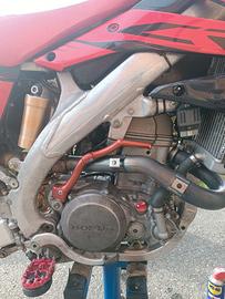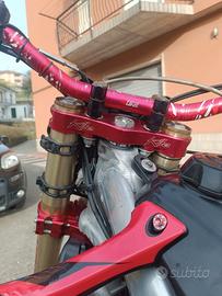 Vendo a malincuore il mio Crf 450R Motard del 2005 TARGATO La moto ha le seguenti modifiche MOTORE: Albero a camme Hotcams stage2 (possiedo anche le camme stage3 hotcams e quelle originali) Collettore di scarico in titanio Centralina con doppia mappa CICLISTICA: Cerchi kite Gomme Michelin Power Cup evo 120/70 ZR 17 160/60 ZR 17 Piastre motard Kite in ergal Steli forcelle motard Showa Monoammortizzatore Öhlins molla gialla Pompa freno anteriore radiale Accossato 16×18 Tubi in treccia Accossato Disco e pinza anteriori Beringer Extreme Riders Pedane Kite Registri catena Kite Rapporti 14/44 Luci Funzionanti Inoltre monta parecchie powerparts in ergal e carbonio Per qualunque altra info non esitate a contattarmi 3465800100