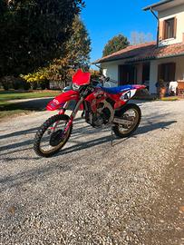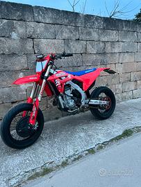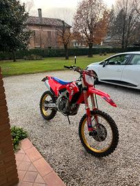 Vendo honda crf 450r tripla omologazione Revisione valida fino al 2030. Modello crf450r 50th anniversario 2023 76h originali Guidabile con patente A2 a 18 anni • omologata per due persone •cerchi cross(21 ant. 19 post.) •gomme scorpion semi nuove •cerchi motard (17x 3.5 ant e 17x5.0 post) •gomme nuove, appena montate pirelli diablo 3 (120-70 e 160-60) •vari accessori in ergal e carbonio. •leveraggio motard in ergal •faro led v-face •doppio kit di plastiche, originali E restyle 2025 ufo •copri carter frizione rekluse •rapporti motard 13-45 La moto dispone di tutti i cablaggi per il montaggio del contachilometri, ottima sia per la strada che per la pista cross e motard. Vendo per inutilizzo, per altre informazioni non esitate a contattarmi.
