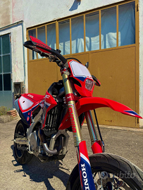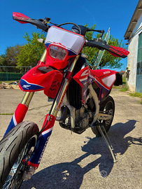 Honda crf 450 rx supermoto moto stupenda , performante , maneggevole grazie al telaio in alluminio ,tre mappature disponibili tramite sistema emsb per regolare erogazione della potenza, sistema launch controllo 3 opzioni di partenza,avviamento elettrico faro con luce led ,impianto frenante Brembo, sempre tagliando in officina specializzata, diverse misure di pneumatici a libretto condizioni pari al nuovo