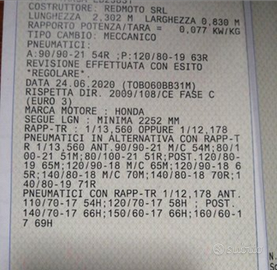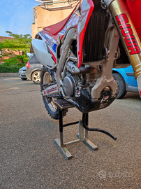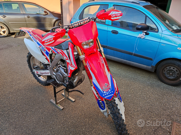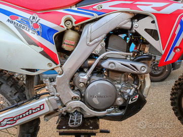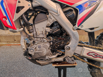 Vendo CRF 250r cross del 2017 su telaio 2014 omologato ENDURO e MOTARD. La moto è nata da cross, ho fatto montare un telaio targato per poter fare enduro (mai fatto però) da officina Honda, quindi lavoro fatto a regola d'arte. La moto ha meno di 48 ore, tenuta in maniera impeccabile, cambio olio motore ogni 5 ore e olio cambio ogni 8. Sospensioni preparate e centralina rimappata da officina Honda. La moto monta paramotore, paramani, protezione radiatori e retina nel serbatoio per non far andare lo sporco nella pompa. Faro anteriore e posteriore nuovi appena montati, mousse e gomme nuove davanti e dietro, do anche una candela nuova (costa 50?), vari filtri olio e un filtro aria di scorta. La moto è perfetta e con la doppia omologazione è veramente rara. Per altre foto o chiarimenti non esitate a chiamare. Controllo valvole e revisione fatti il giorno 16-09-22 e moto più usata.